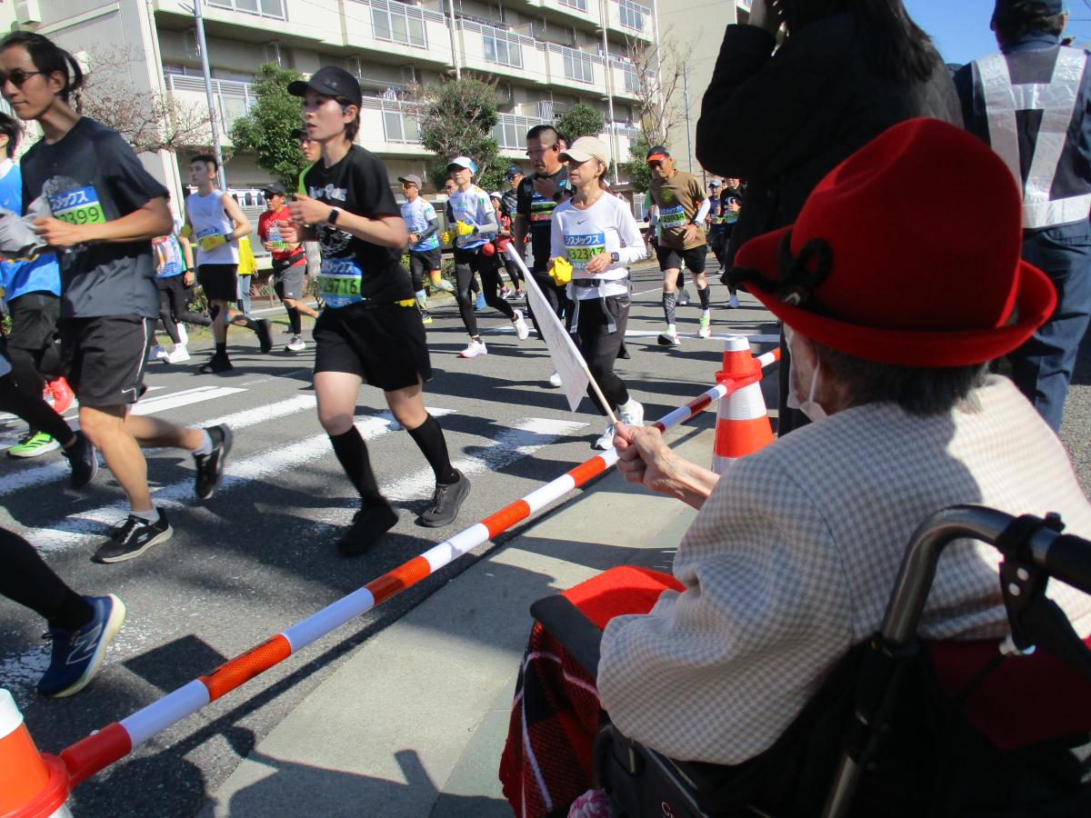 マラソンコースが介護の家の数十m先となっており、毎年ご入居者様が沿道で応援をしております。