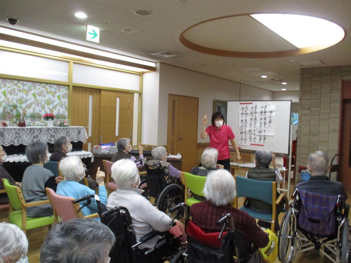 午年にちなんだ紙細工・介護の家神社初詣・風船羽子板・獅子舞・おみくじ等を時間を忘れたかのように職員とともに楽しみました。